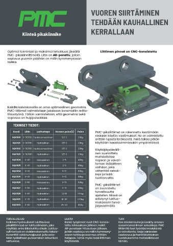Koodi Liitin Lukitustapa Koneen paino(t) Paino PMC-pikaliittimet on rakennettu kestämään
