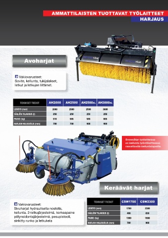 Sivuharjat hydraulisella nostolla, lEvEyS (mm) 1700 2300